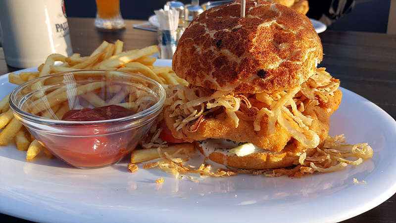 패티는 슈니첼(독일의 돈까스, 돼지고기를 얇게 튀김옷으로 튀긴것)을 넣은 것같다.