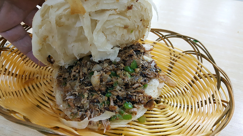 영어로는 Tong Guan, Meat clips라고 되어있는데 패스트리같은 빵속에 고기와 채소를 뽁은 속이 들어있다.