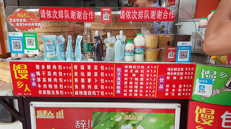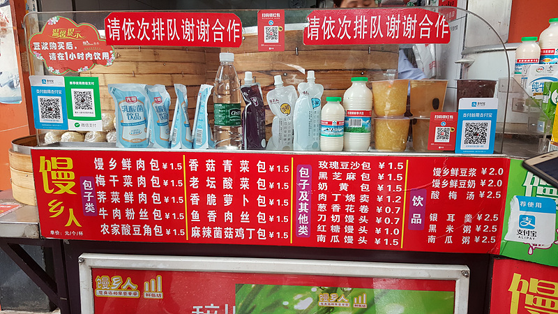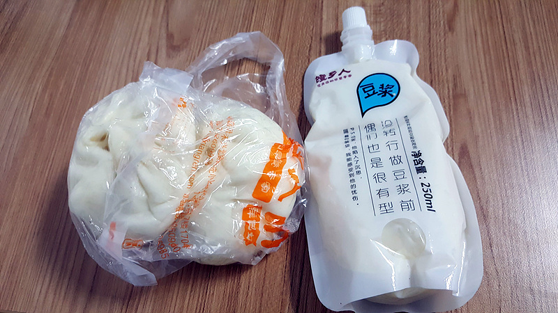 가격도 싸서 바오쯔 한 개에 1.5위안 (250원)이고 더우장과 바오쯔 2개면 5위안(850원)으로
