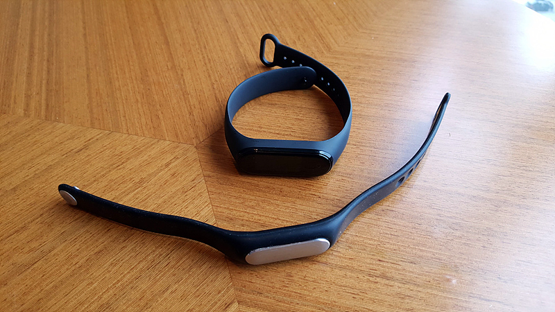 컬러 디스플레이 장착으로 미밴드1에 비해 더 커진 본체.