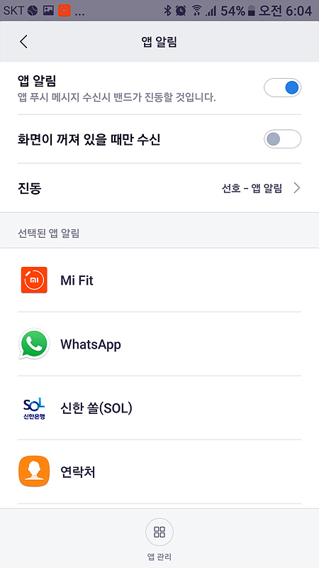 미밴드에서 제일 핵심적인 기능이 바로 앱 알림 설정이다.