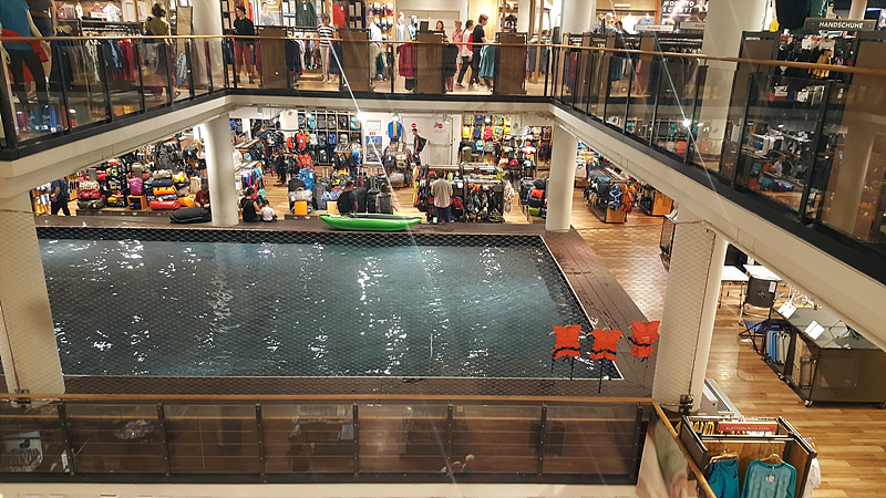 Globetrotter이라고 아주 큰 스포츠 전문매장인데 2층에 대형 풀장이 있고 카누를 직접 타볼 수 있다.