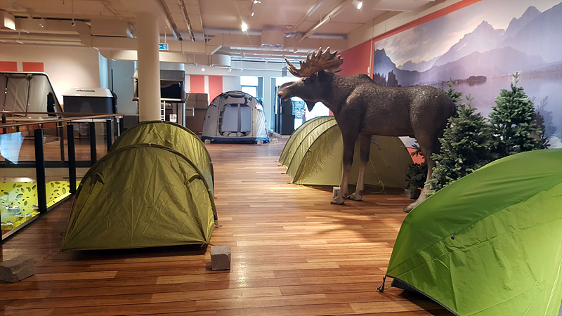 제일 꼭대기 5층에는 텐트들이 전시되어있다.
