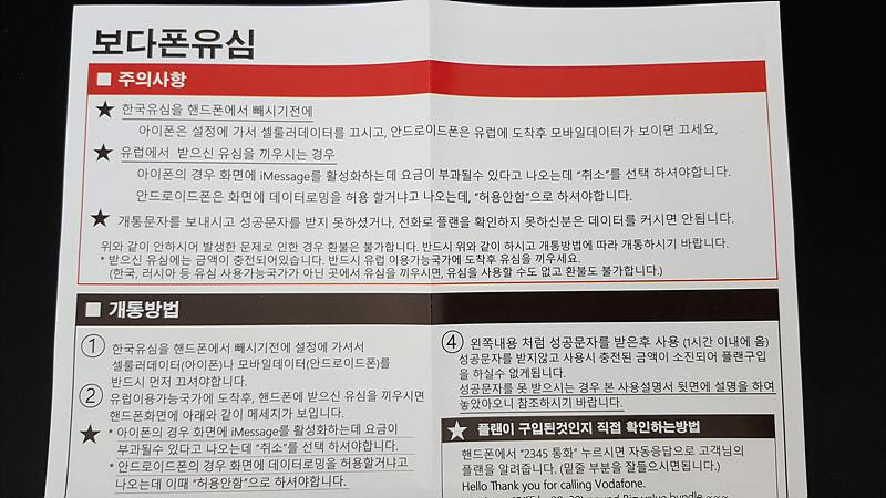 이전에는 항상 쓰리심을 이용했는데 이번에는 시간이 없어 지인이 주문한 보다폰 유심을 사용하게 되었다.