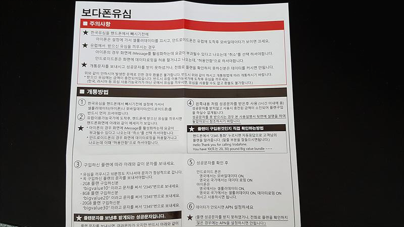 이전에는 항상 쓰리심을 이용했는데 이번에는 시간이 없어 지인이 주문한 보다폰 유심을 사용하게 되었다.