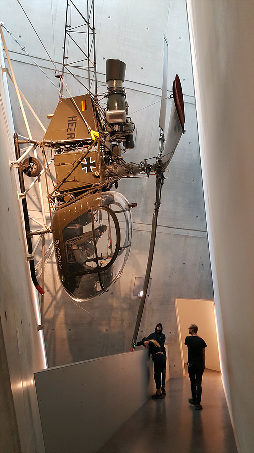 실제 헬리콥터를 벽에 매달아 놓았다.