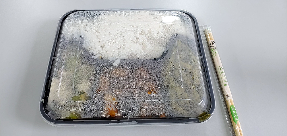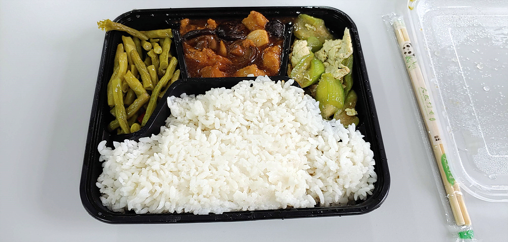 중국 지사에서 점심으로 배달시켜먹은 도시락, 15위안.