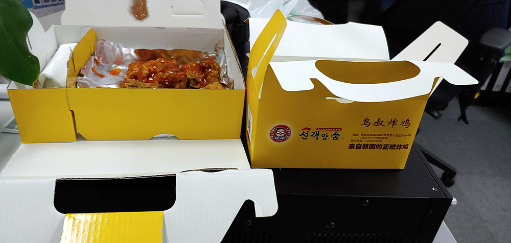 요즘 중국에서 한국식 치킨이 유명하다는데 포장부터 내용물 구성이 한국 치킨이랑 거의 똑같다... 맛 빼고~