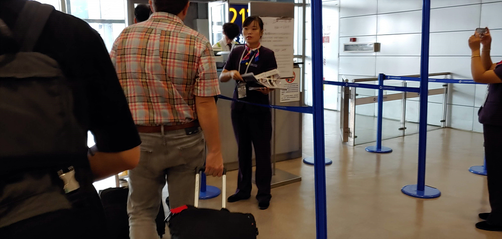 김해에서도 푸동에서도 게이트를 이용해서 탑승이 아니고 버스를 이용해서 활주로에서 탑승하게 된다.