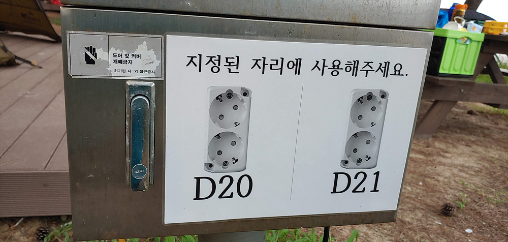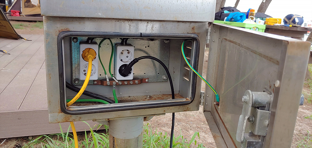 이 곳 캠핑장은 사이트마다 가까운 장소에 분전반이 있어서 커다란 릴을 가져올 필요가 없다.