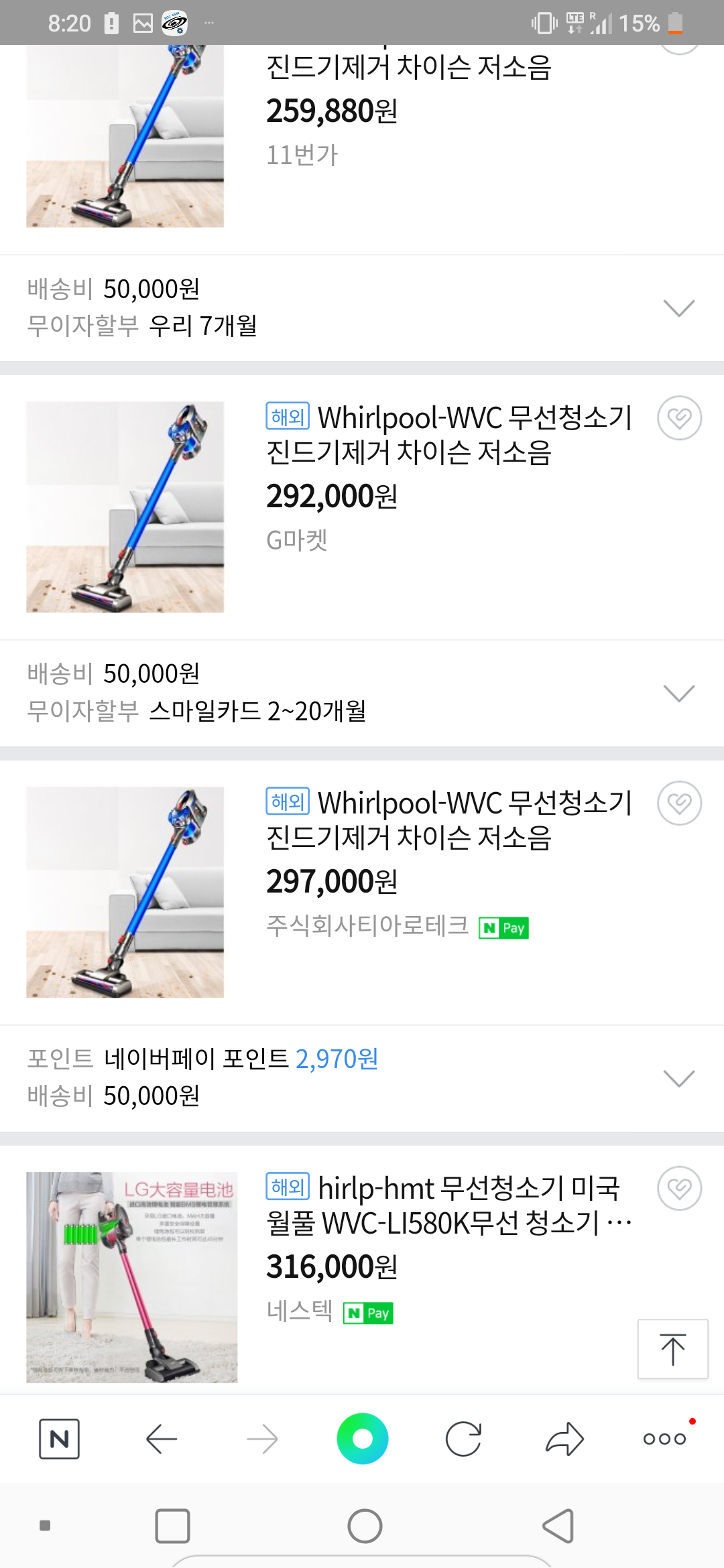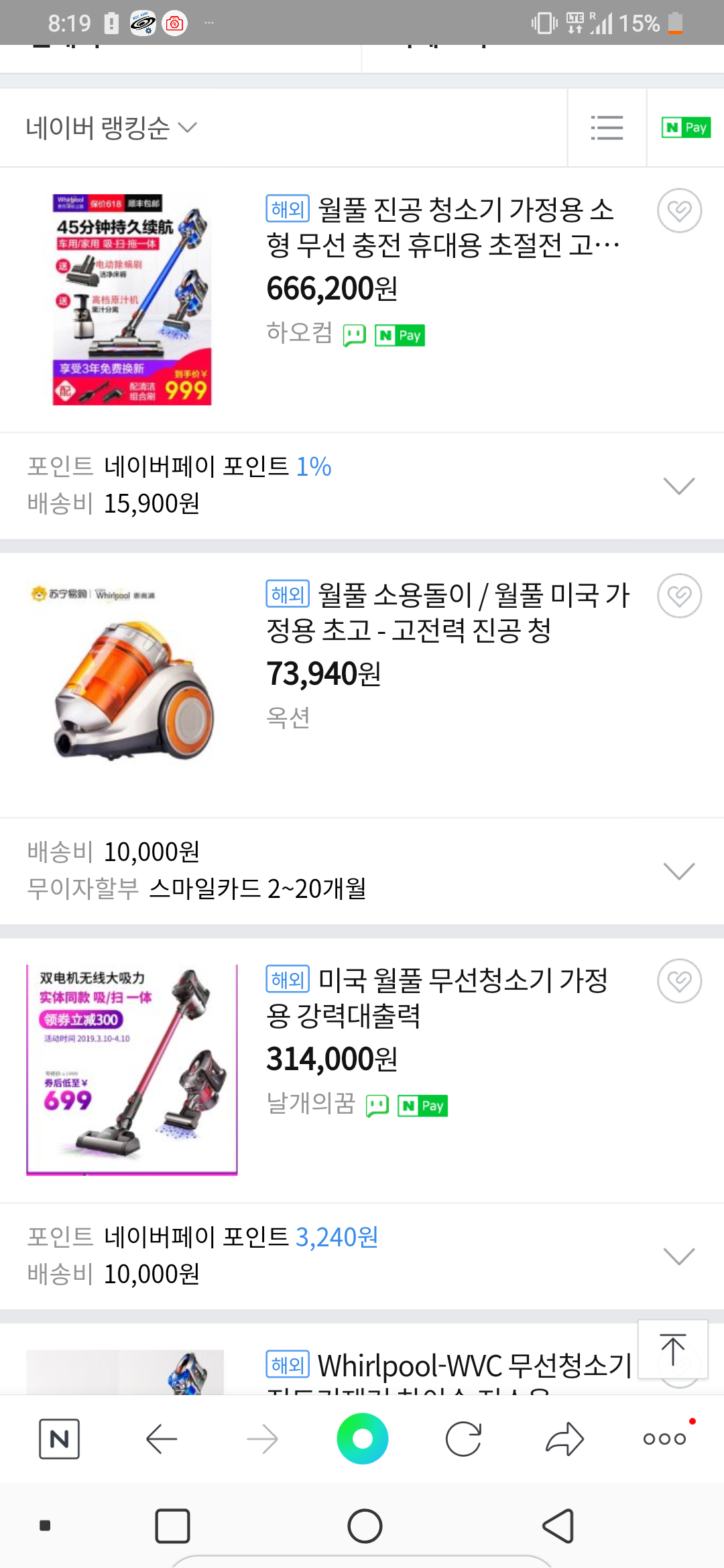 중국 짝퉁 다이슨인 차이슨의 국내 가격과 비슷한데, 그래도 이건 월풀이라는 나름 유명 브랜드라서 좀 더 성능이 낫지 않을까.