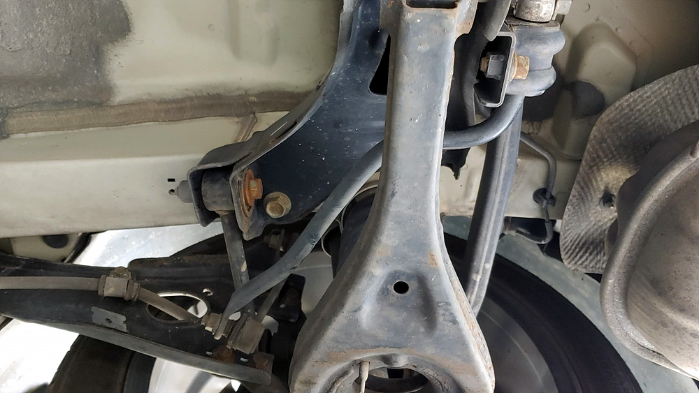 바로 이 부분(어시스트 암)의 고무 부싱이 제 기능을 못해서 잡소리가 나는 거였다.