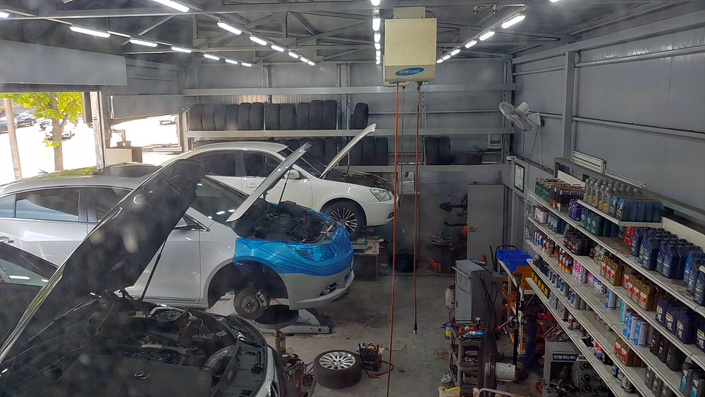 공임나라 예약한 후 리프트에 띄워서 하체쪽을 살펴보시더니 어시스트 암쪽 문제라고 한다.
