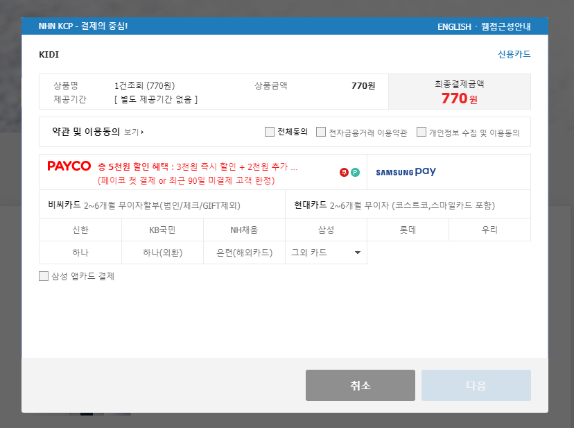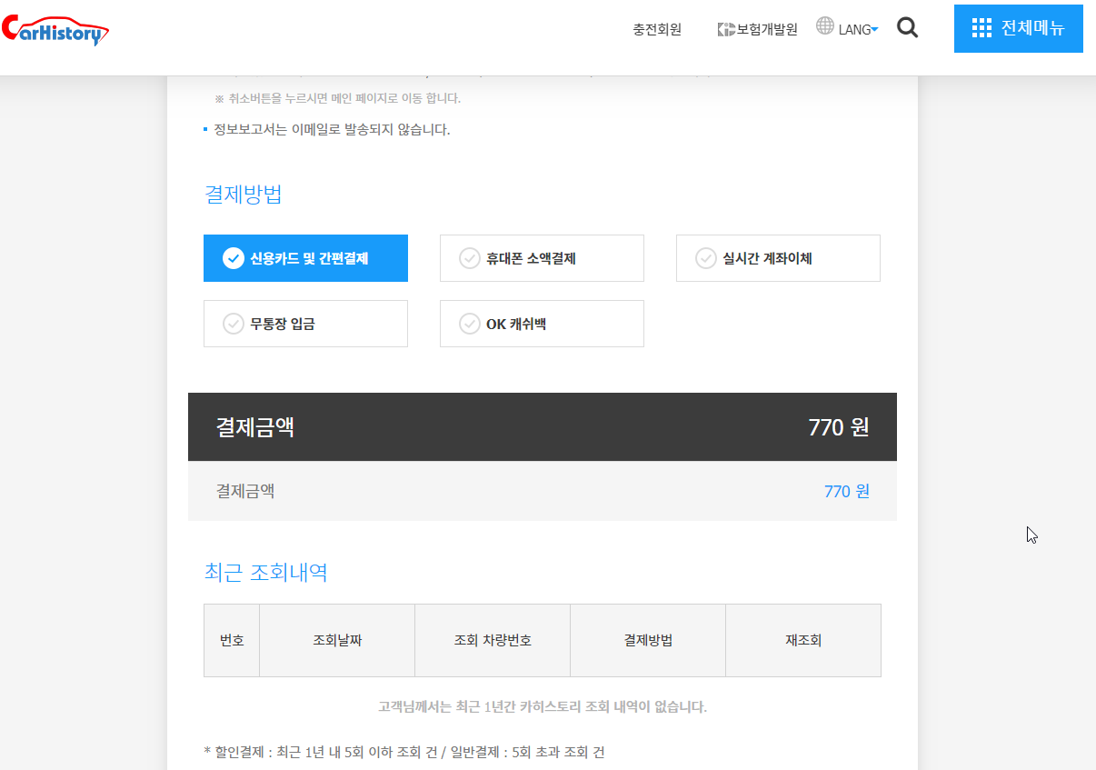 이럴 때는 카히스토리라는 사이트에서 1건당 770원으로 저렴하게 확인할 수 있다.