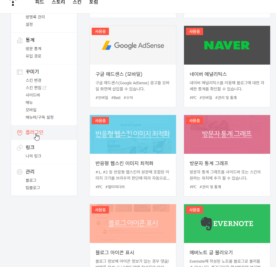 일단 티스토리 설정에서 플러그인, "에버노트 글 불러오기"를 선택해서 활성화를 한 후,