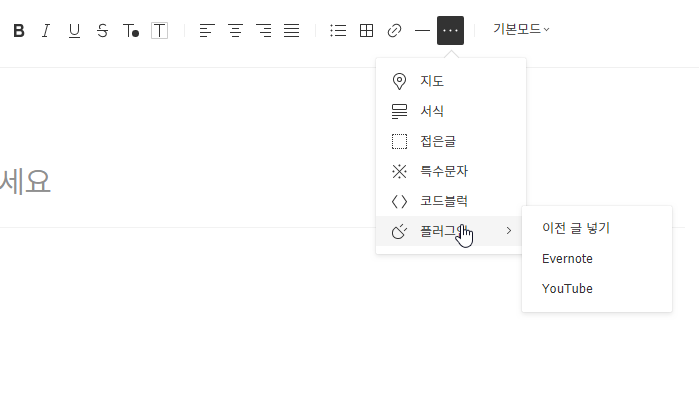새 글 쓰기의 더보기>플러그인>에버노트를 클릭하면, 에버노트 불러오기가 실행되고 "티스토리" 태그가 적용된 노트를 찾아준다.
