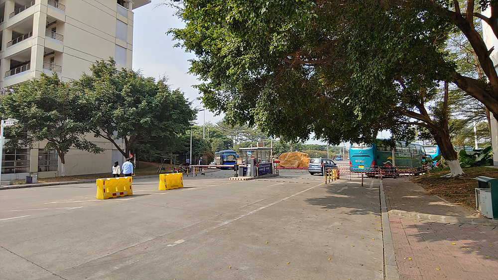 정문 앞에 광동의과대학이라고 쓰인 돌이 놓여있다.