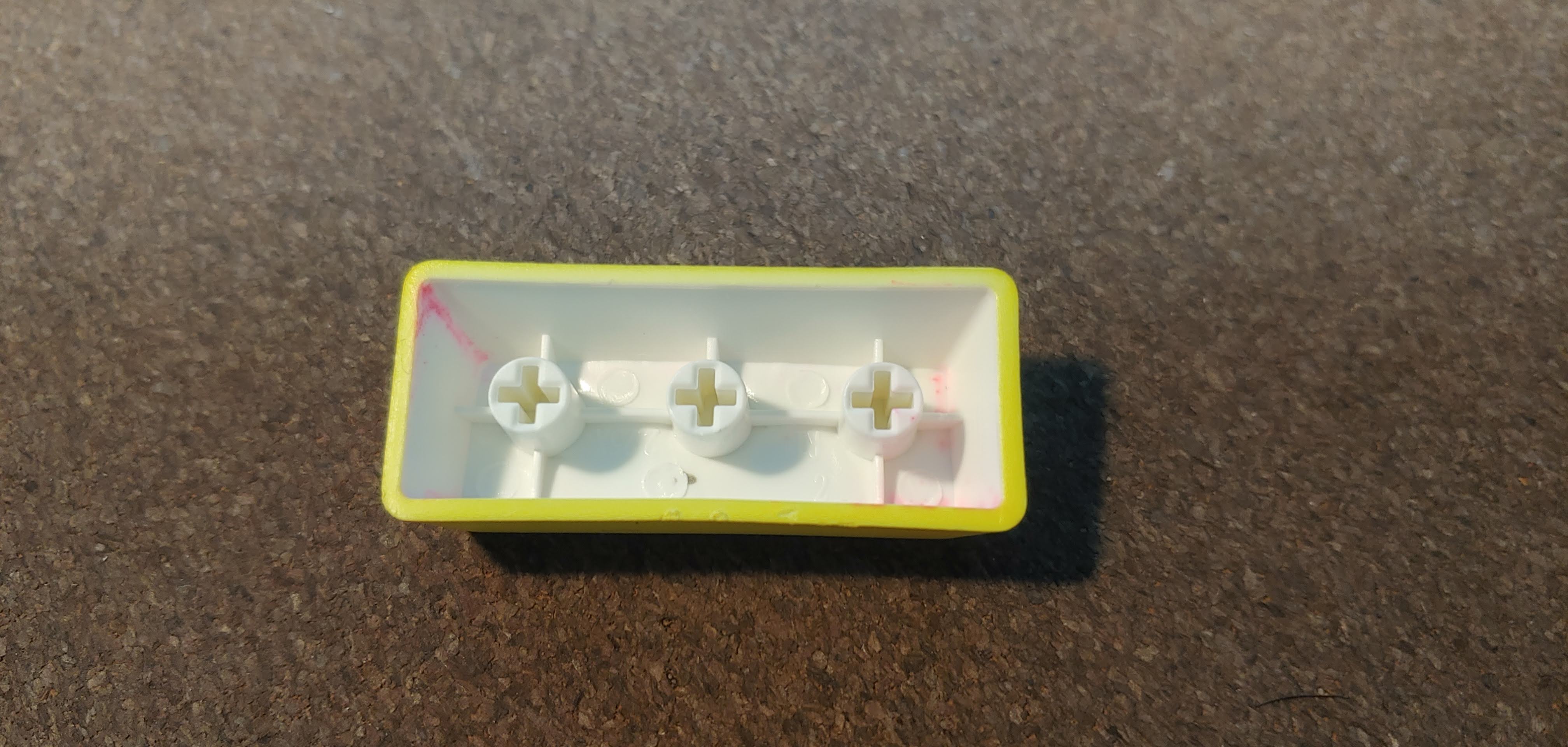 다른 키캡 역시 정도의 차이만 있을 뿐 잉크 흐른 자국이 있고 마감이 좋지 않다.