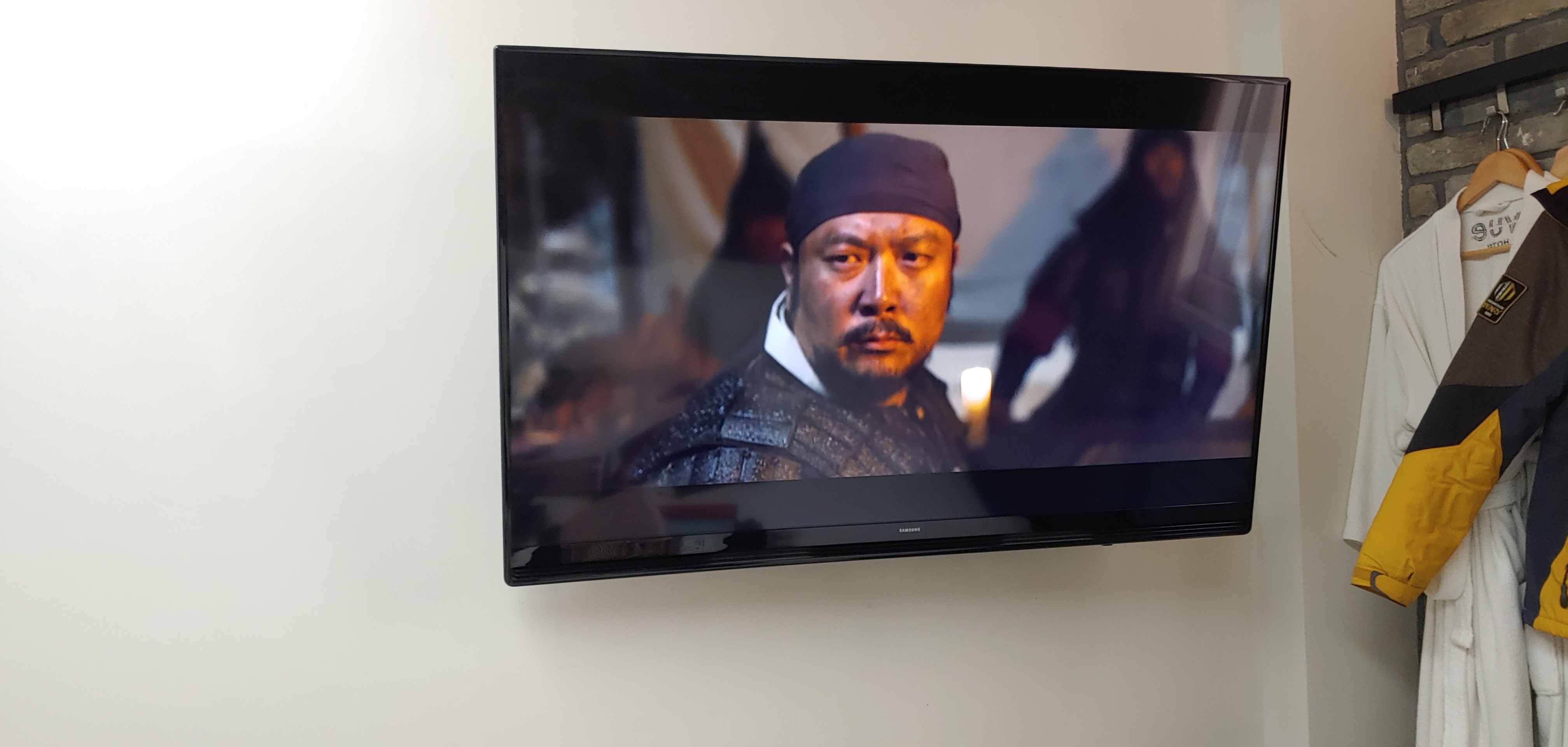 티비는 50인치 이상되는 것같고 화질이 상당히 좋다.