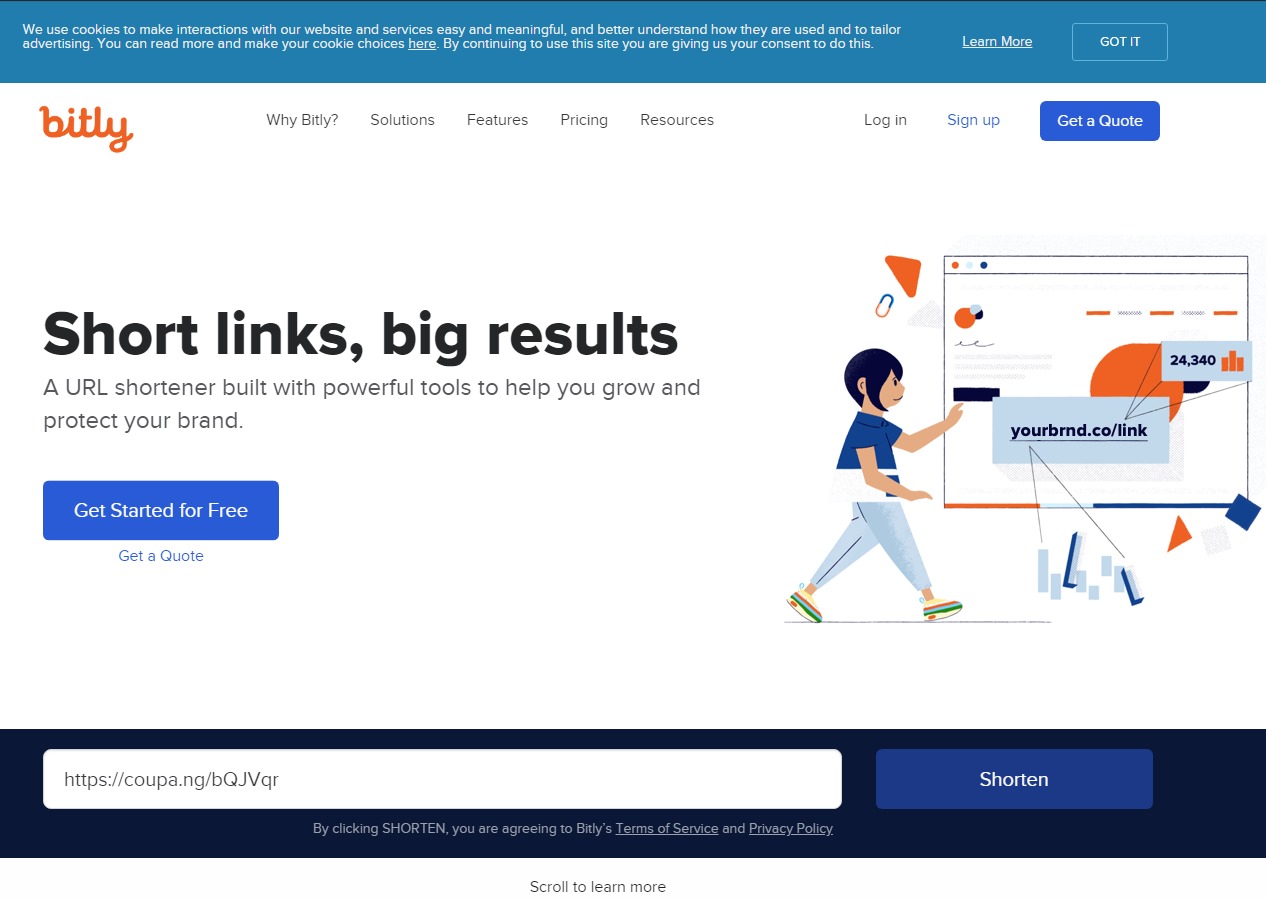 주소창에 "bitly.com"을 입력하면, 아래 사이트로 이동된다.
