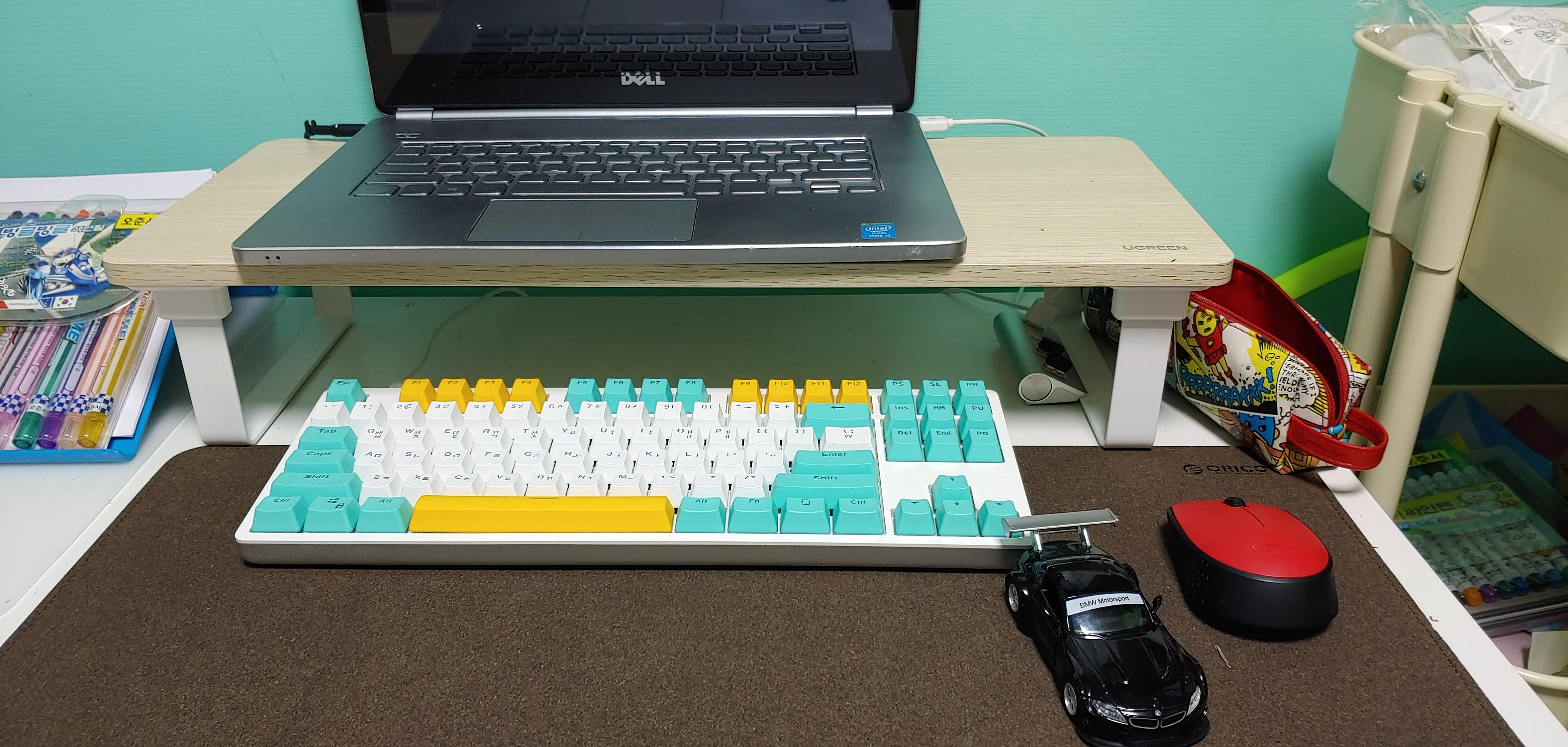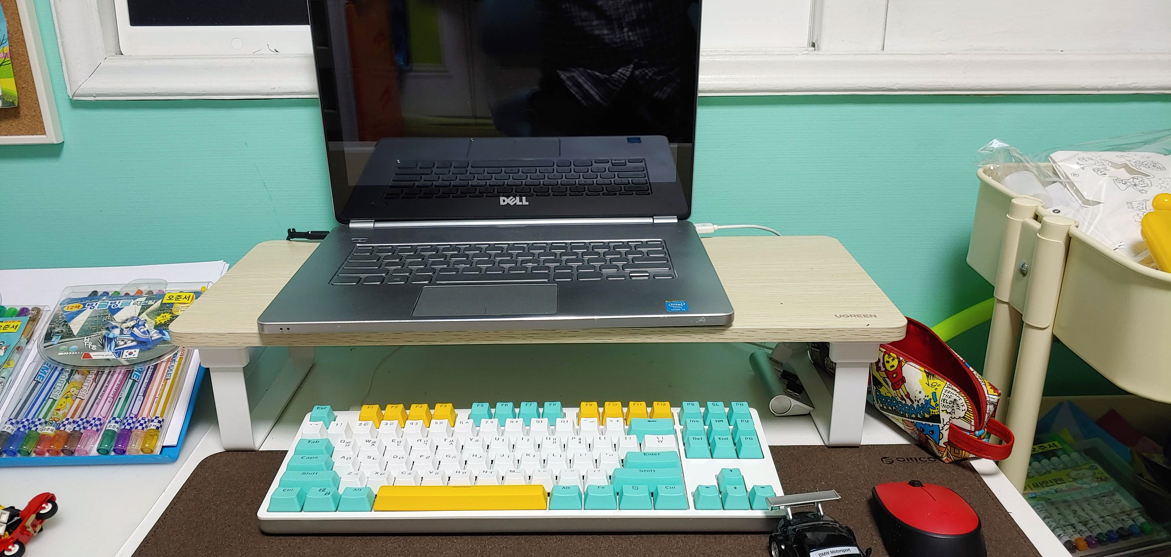 어린이책상이다보니 노트북 설치 후 책상이 좁아졌다.