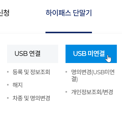 하이패스 단말기>USB미연결>명의변경(USB미연결)