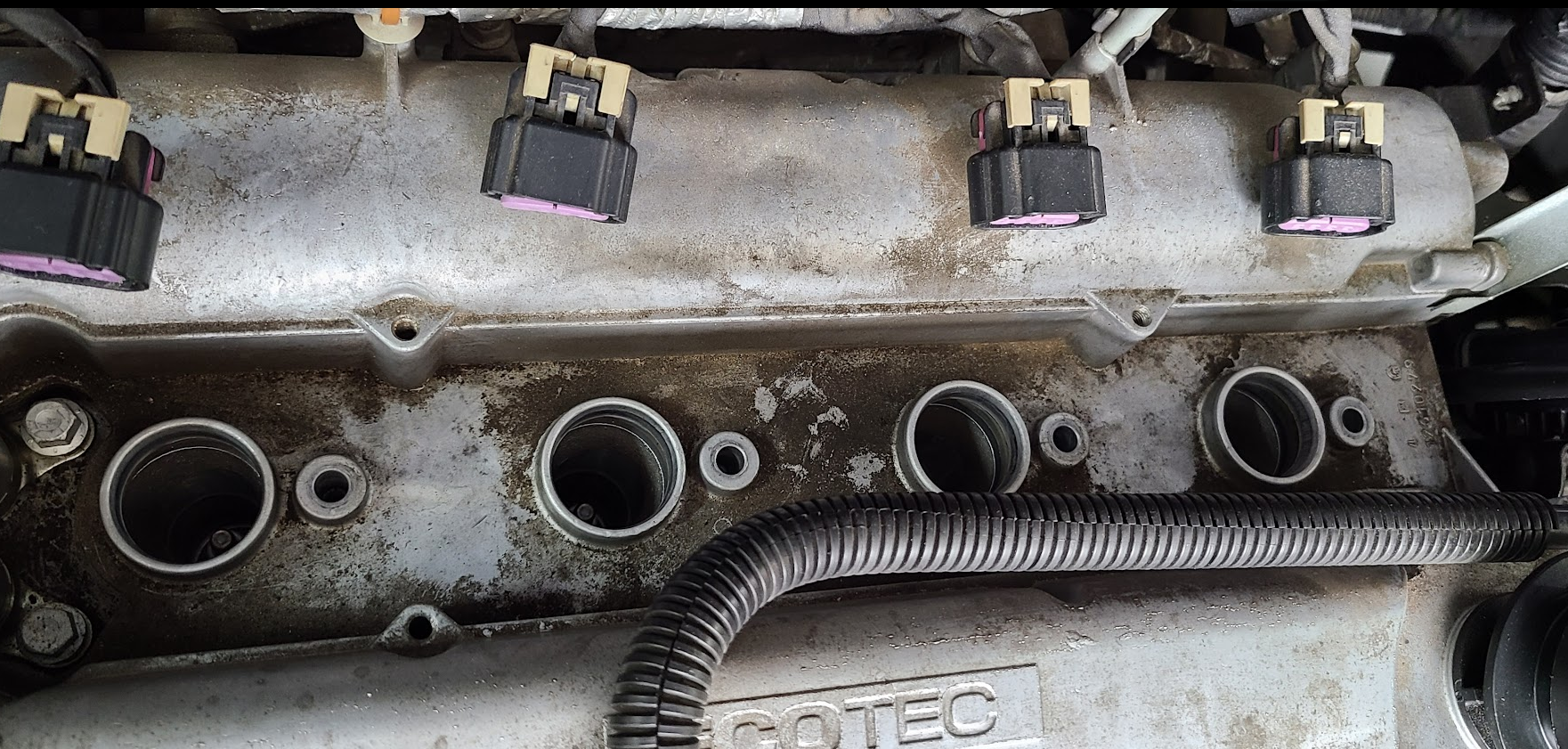 4기통 엔진이라 점화코일이 4개 보인다.