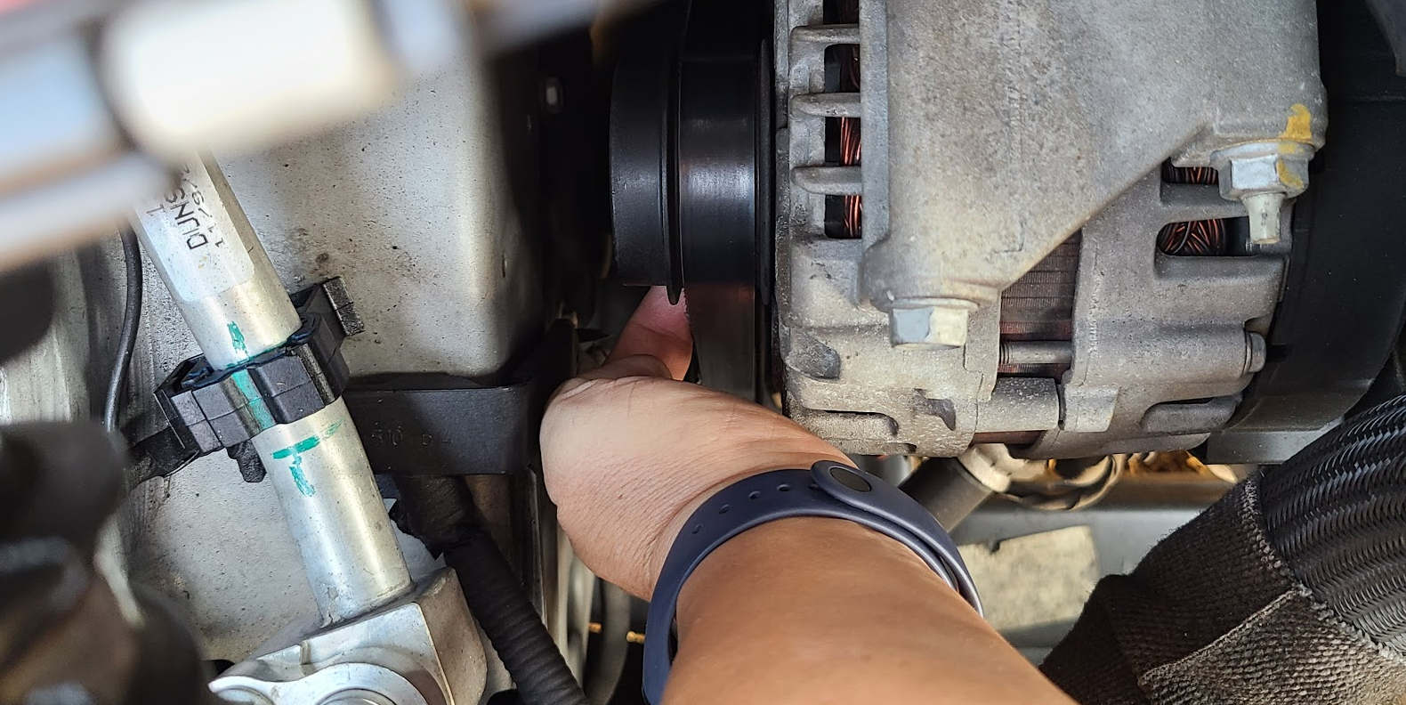 자동차 엔진에서 겉벨트 돌아가는 소음이 발생할 때 일시적으로 조치하는 방법이 몇가지 있다.