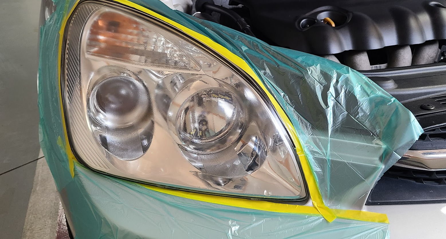 동봉된 마스킹테이프로 헤드라이트 주위를 붙여준다.
