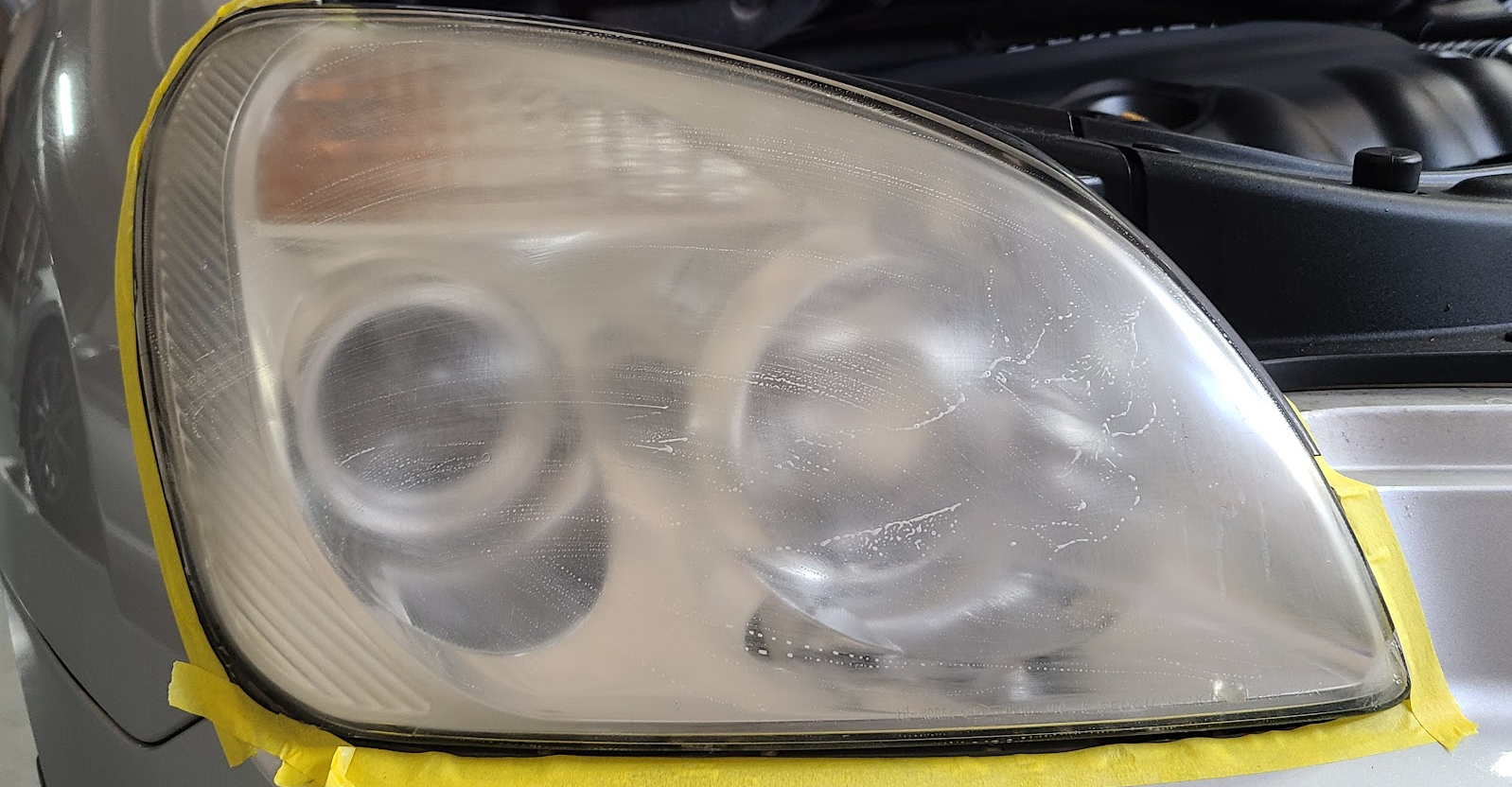 헤드라이트 겉 표면을 깔끔하게 갈아내야지 결과물이 좋다.