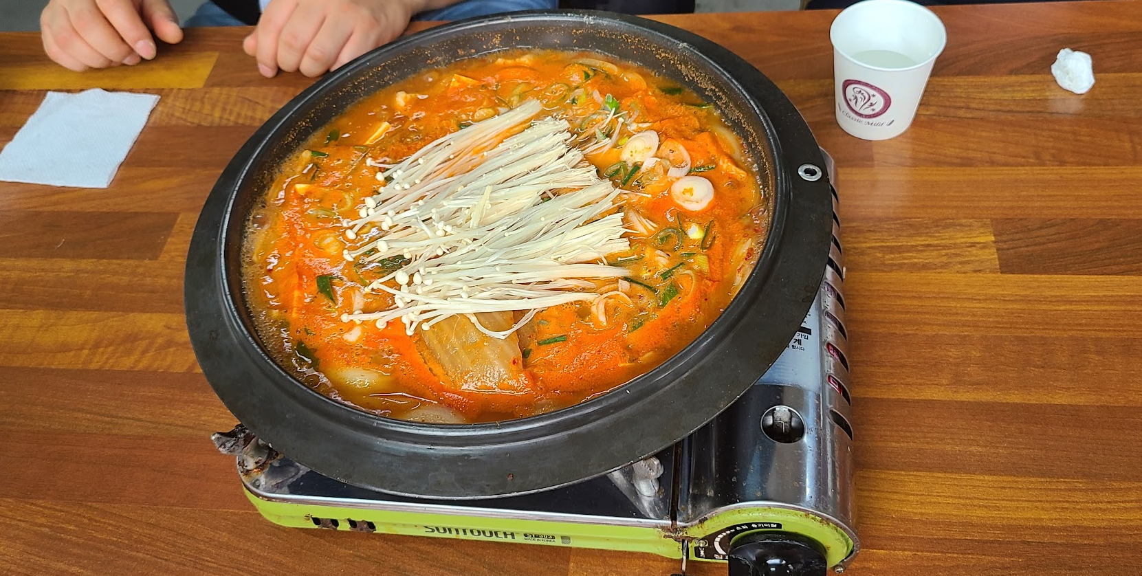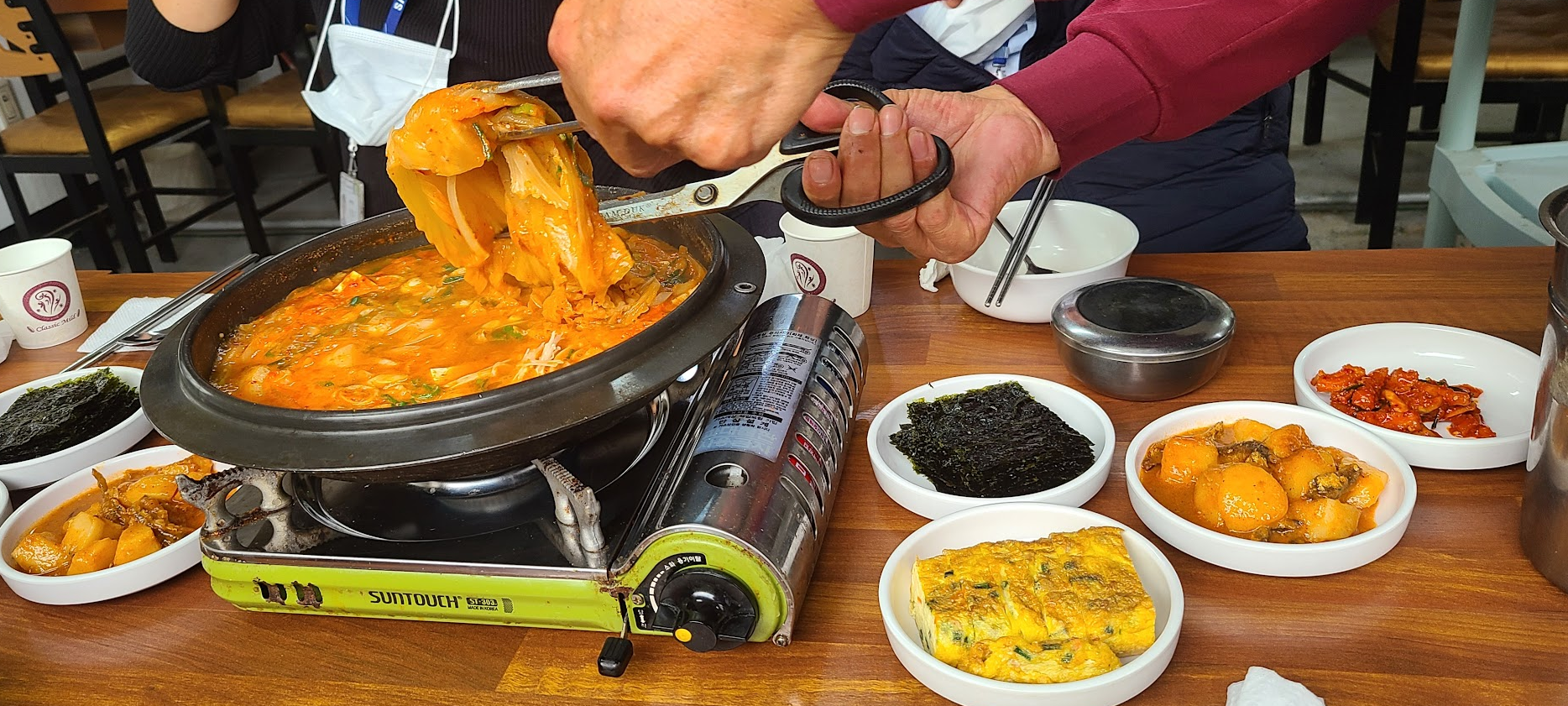 김치찌개를 주문했고 주인께서 김치 꼭다리를 잘라주신다.(1인분 9천원)