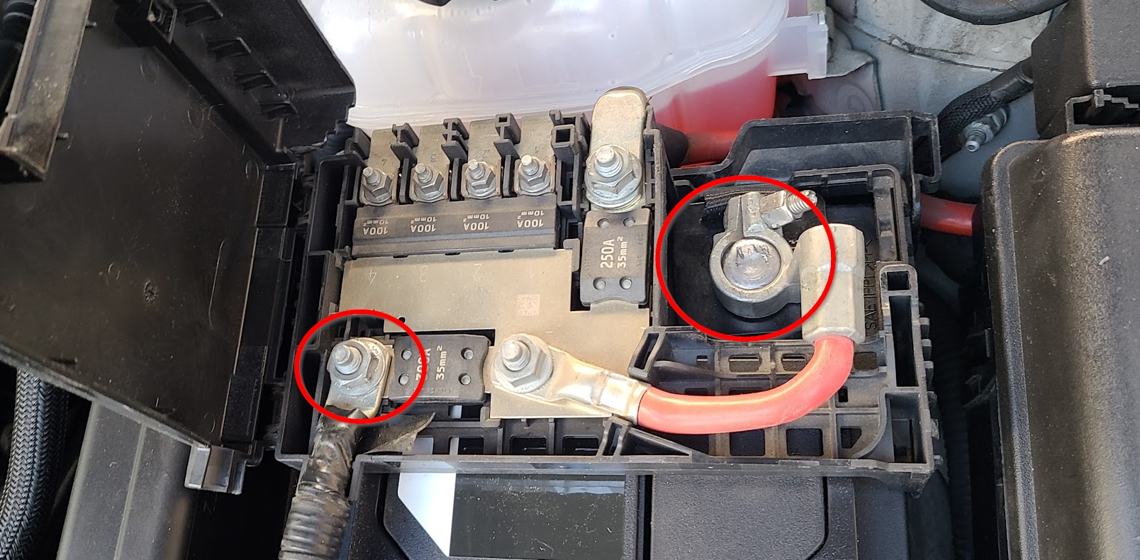 이제 +단자를 제거해야하는데 위에서 언급했듯이 쉐보레차는 퓨즈블록이 +단자에 있는 형태라서 이 단자를 제거해준다.