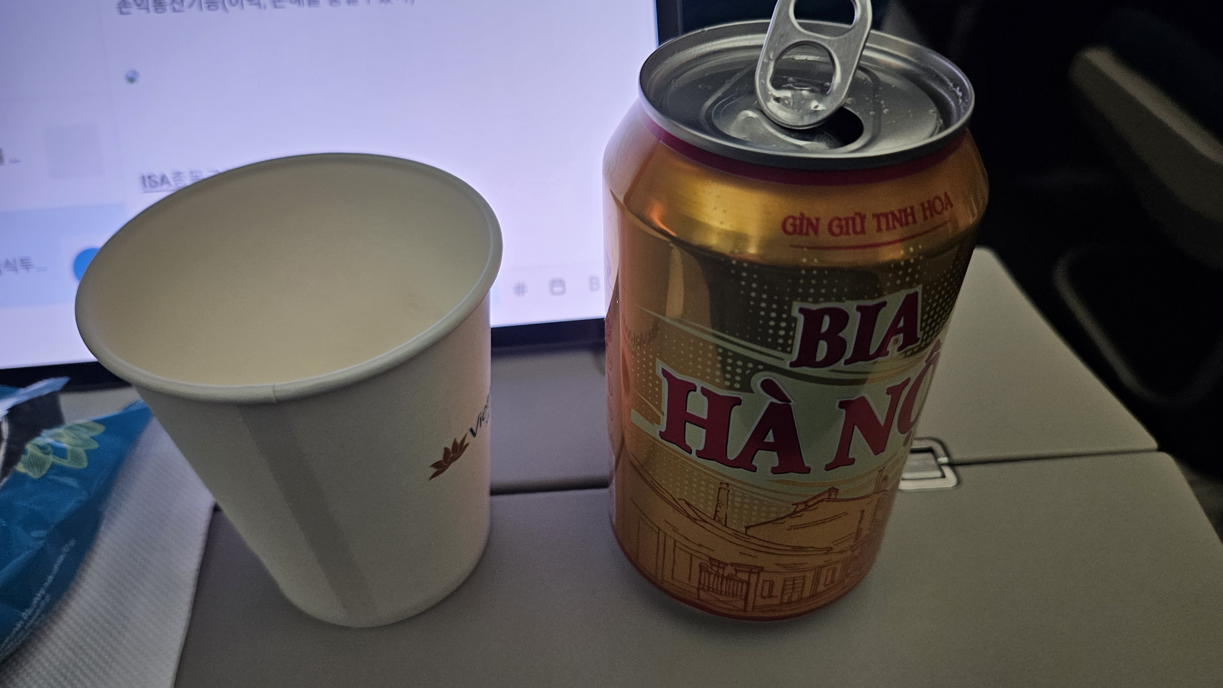 점심 기내식이 나오기전 맥주 먼저...베트남항공사라 하노이 맥주가 제공된다.
