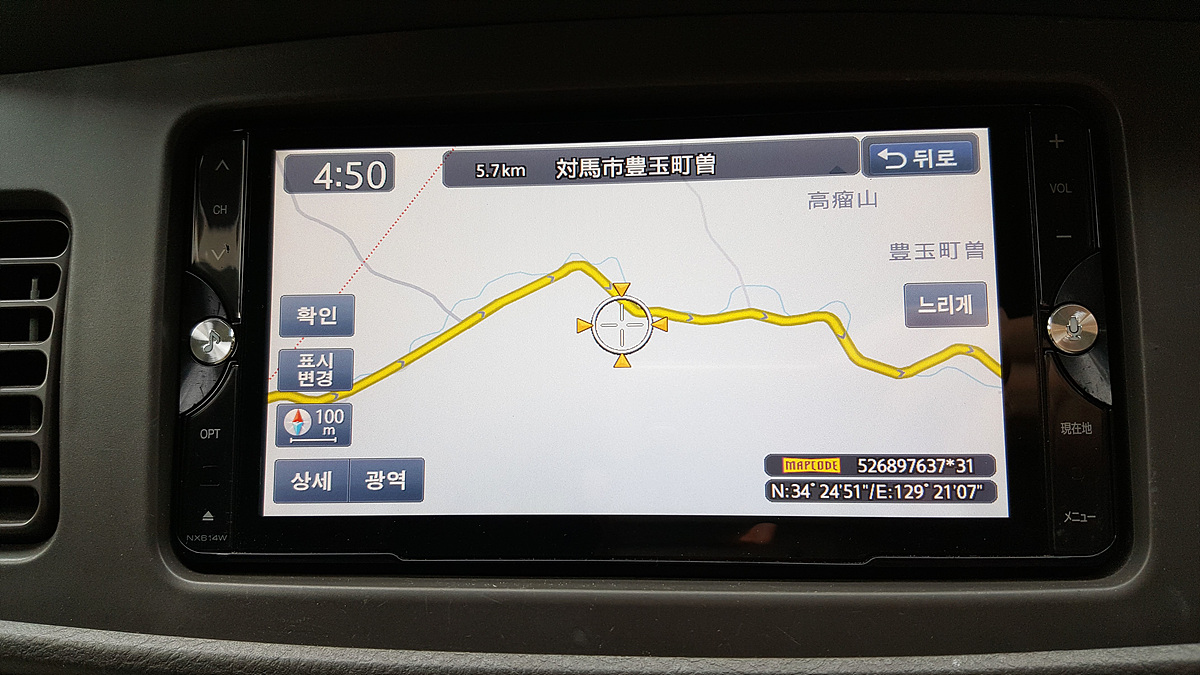 네비가 기본 장착되어있고 한글이 되어 맵코드만 치면 간편하게 목적지까지 갈 수 있다.