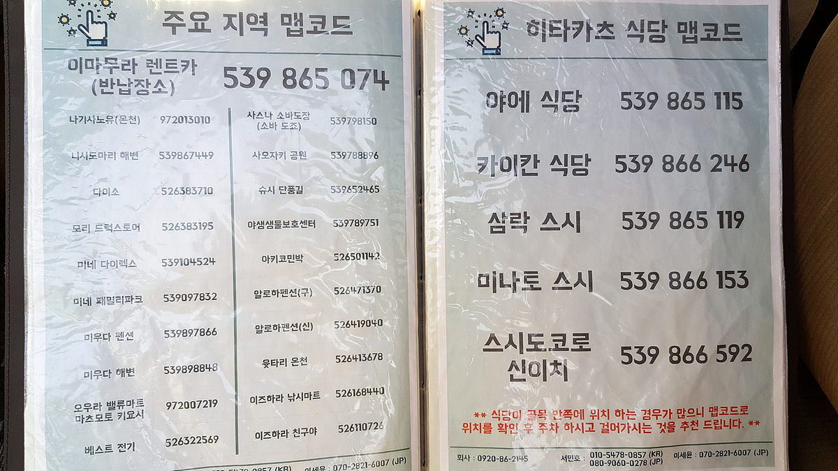 차량내에 주요지역 맵코드가 있어서 왠만한 곳은 이 자료만 보고도 갈 수있다.