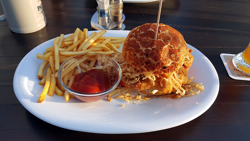 패티는 슈니첼(독일의 돈까스, 돼지고기를 얇게 튀김옷으로 튀긴것)을 넣은 것같다.