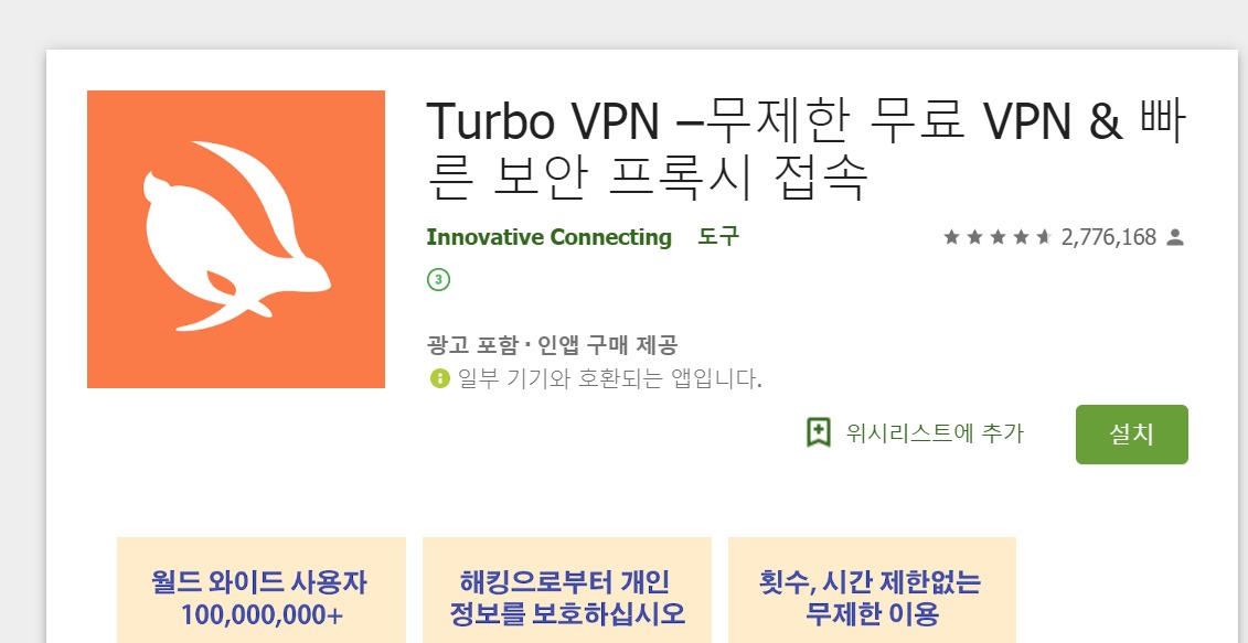 2. VPN을 무료로 사용할려면 Turbo VPN 추천