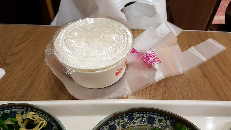 혼자 먹기에는 3가지 반찬이 너무 많아서 포장용기에 담아서 숙소에서 가져갈려고 종업원에게 용기달라고