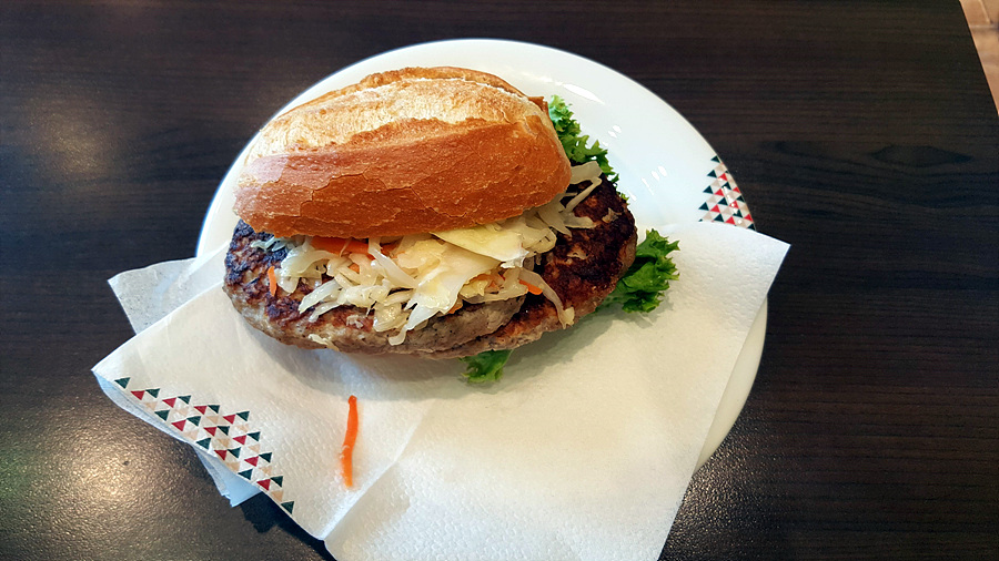 아래는 토요일 dm 근처 간이 식당에서 사먹은 버거, 2.3유로.