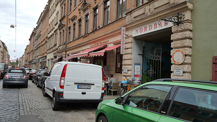 위치는 드레스덴 신시가지에 있는데 도로가 좁고 주차할 곳도 마땅치 않다.