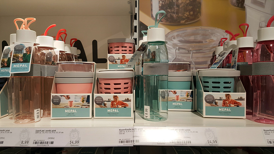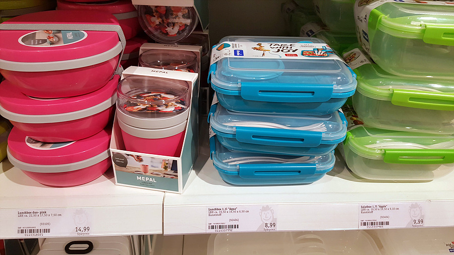 도시락통이 너무 예뻐서 구입했다. (중간 파란색 도시락, 8.99 유로)
