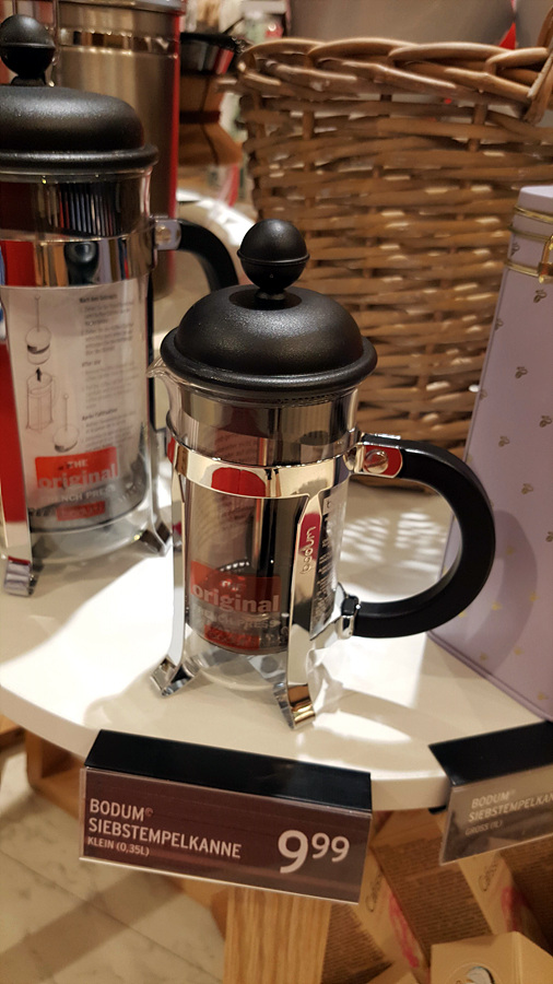 보덤 프레스 커피 기계가 9.99 유로로 아마존보다 싸게 판다.