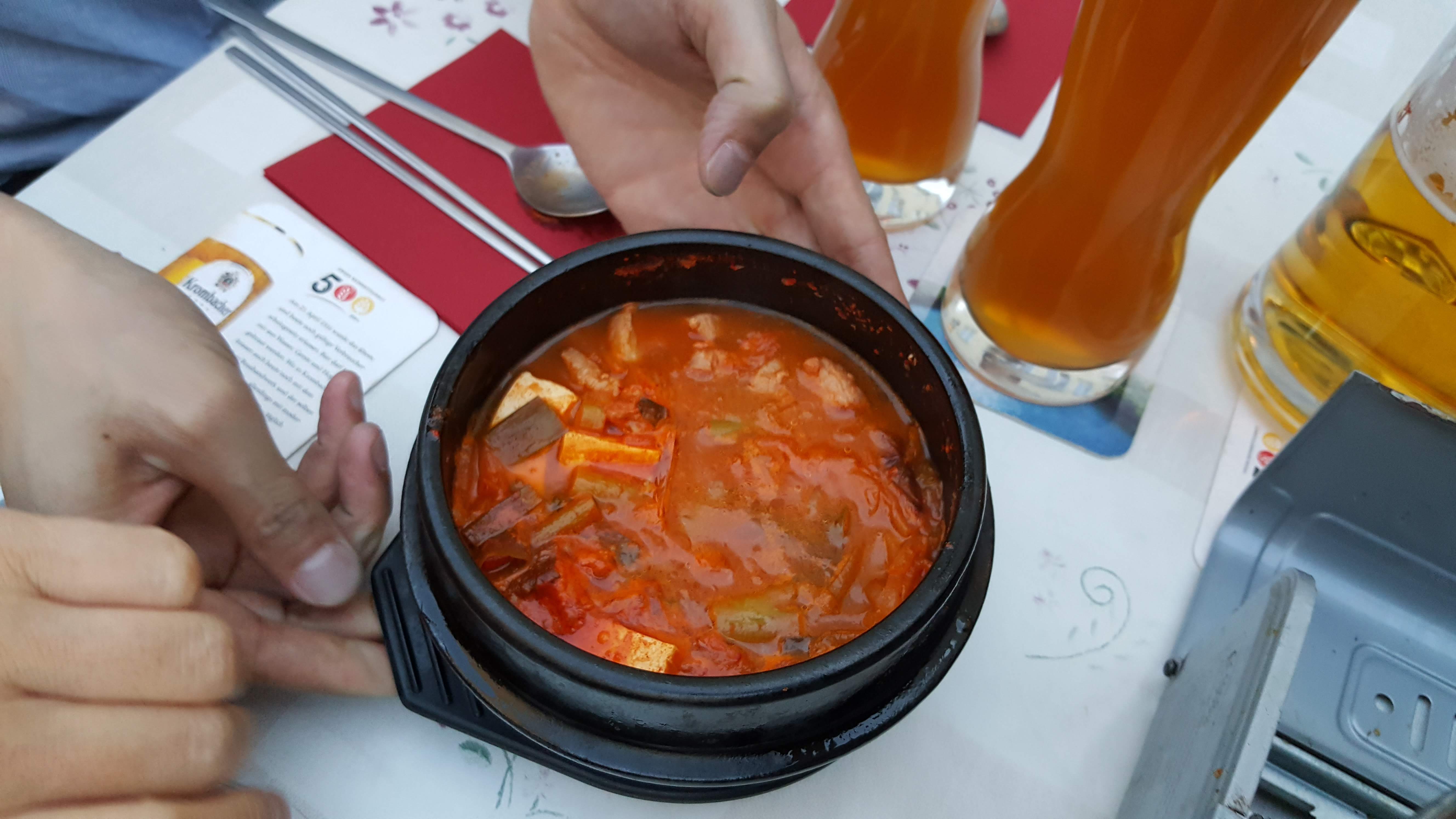 내가 주문한 부대찌개도 한국에서 먹던 것과 그다지 차이점이 없다. 독일이라서 소시지도 한국보다 훨씬 나은 것 같다.