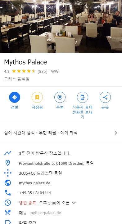 독일 드레스덴의 그리스 식당, Mythos Palace.