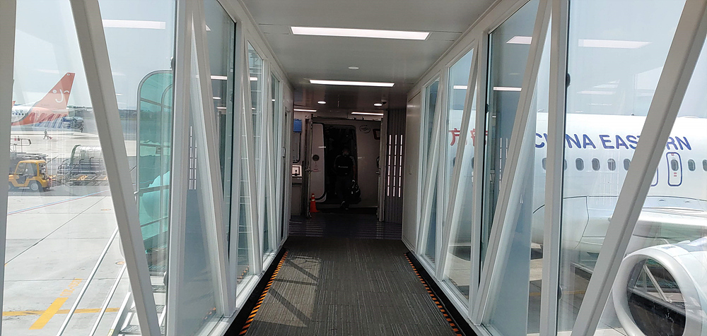 부산에서 출발할 때는 게이트를 통해서, 푸동공항에서는 활주로에서 타고 내려야 한다.