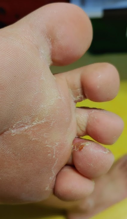 발가락 사이 상태가 심각할 정도로 악화되었다.
