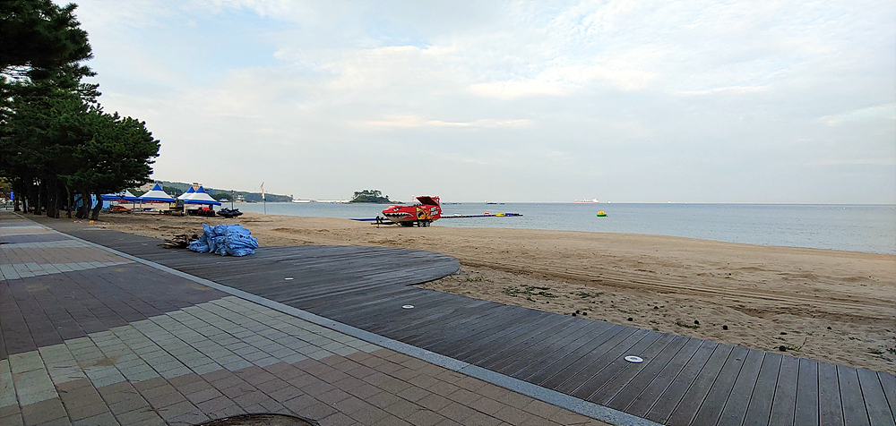 한적한 진하 해수욕장.. 바람도 선선하고 하늘도 맑고 평일이라 사람도 적어서 릴랙스 하기엔 딱이다.