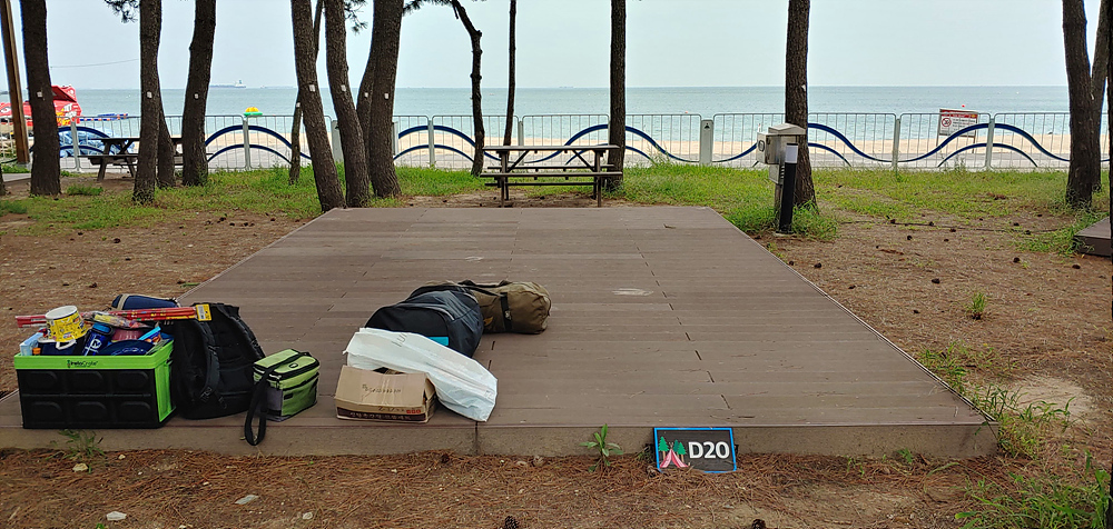 저번에는 D21사이트에서 1박을 했는데 21사이트는 사선으로 조금 기울어진 배치라서 마음에 안 들었는데