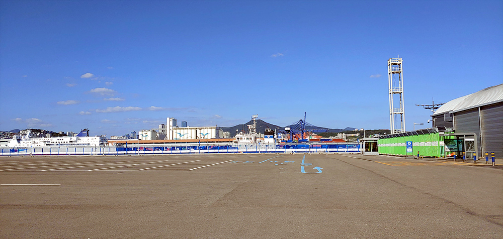 부산 국제여객터미널 야외 주차장으로 들어와서 바다 쪽으로 계속 나오면 부산항 국제여객 제2터미널 건물이 보이는데