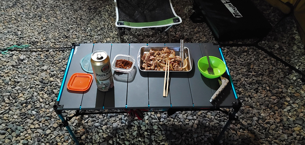 아들이랑 단 둘이 급하게 나온 캠핑이라 돼지 목살만 사 와서 프라이팬에 구웠다.